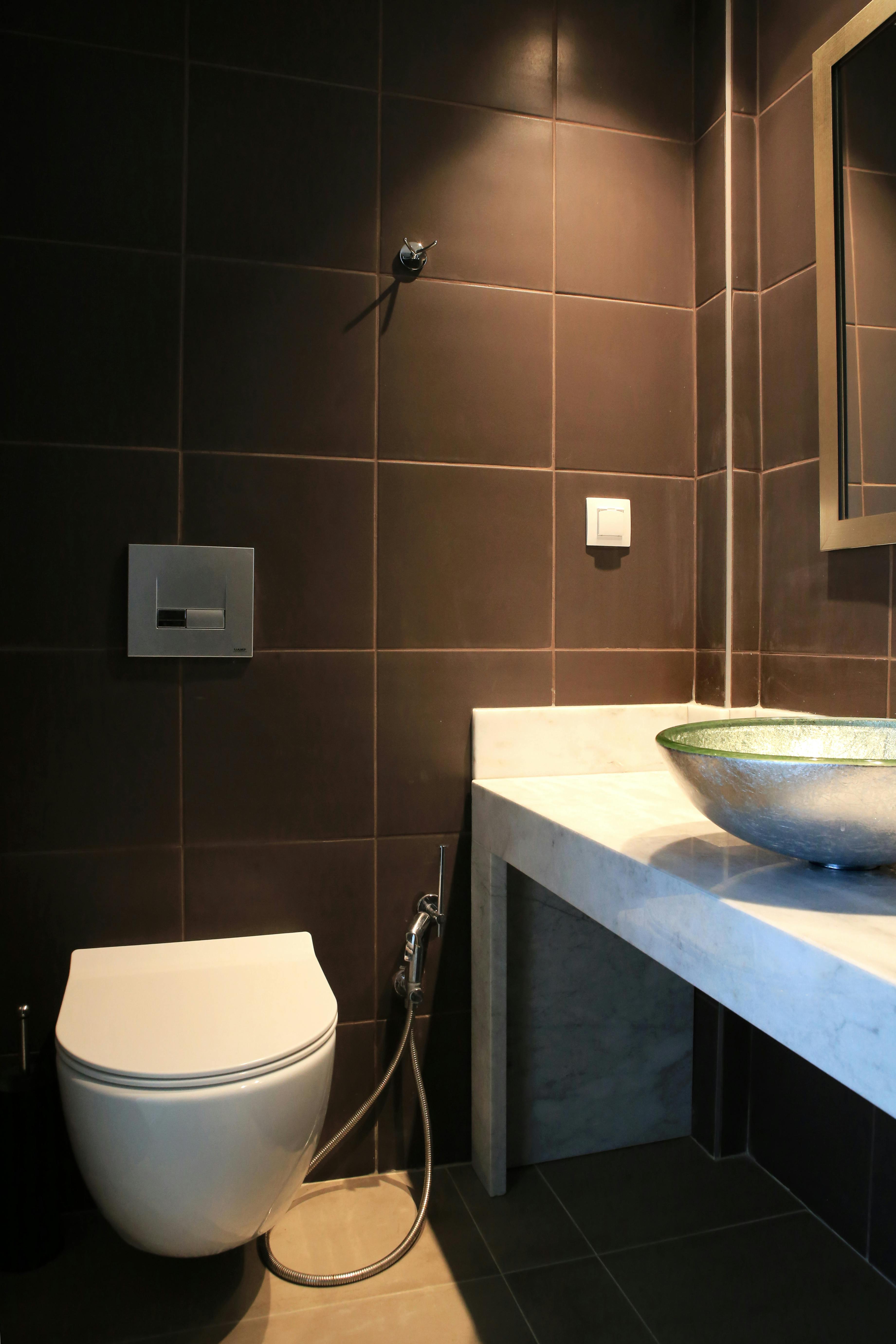- bathroom with: shower, sink, toilet, hair dryer, bath robe, bath slippers